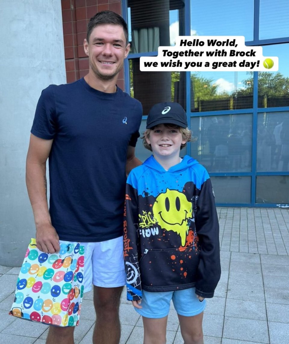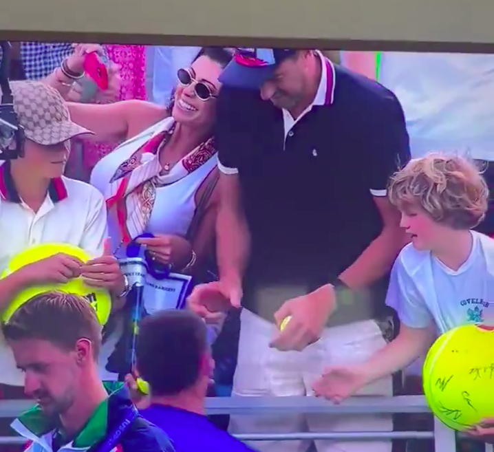 在美网男单第三轮比赛中,一位成年男子当众抢走了波兰选手迈赫扎克送给小男孩的帽子。