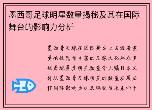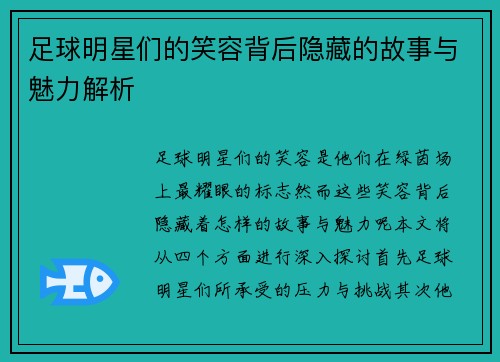 本文将对当今足球明星的现状进行深入解析,重点关注他们所效力的球队及其在各自俱乐部中的角色与表现。随着职业足球的发展,众多球员从传统豪门转会至新兴球队,这不仅影响了他们的职业生涯,也改变了全球足球格局。通过分析包括梅西、C罗、内马尔等在内的明星球员的现状与所效力球队,我们能够更好地理解现代足球的发展趋势,同时也能洞察这些巨星如何在新的环境中继续发光发热。文章将从四个方面展开:一是球员转会动态;二是球...